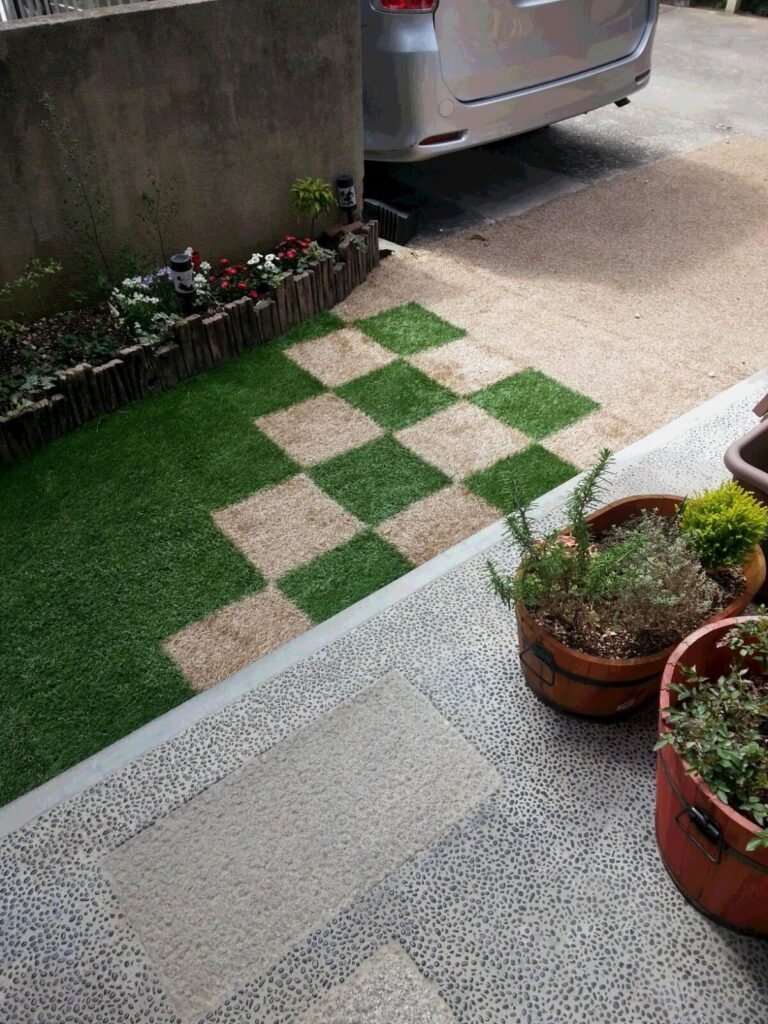 耐久性のある人工芝ならではの使い方が可能。屋内・屋外に、和風庭園やモダンな空間に。景観を崩さず、幅広い用途でお使いいただけます。
