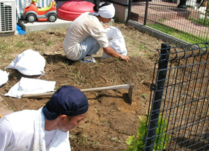 作業内容が決まりましたら、整地や除草を行い、熟練の職人が丁寧に下地処理を行います。