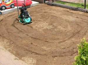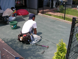 材料から施工まで安心して弊社、高橋造園土木(有)にお任せください!人工芝の施工で一番大事な、
